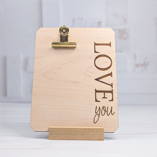 Maple Wood Clipboard Frame with Cherry Wood Stand - Love You